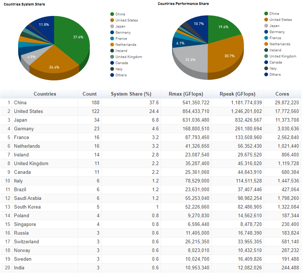 사실상 중국과 미국이 전세계 대부분의 슈퍼컴퓨터를 보유하고 있다. 세계적인 성능의 슈퍼컴퓨터를 활용하여 일을 하던 연구를 하던 뭔가를 해보고 싶다면, 중국이나 미국으로 가야 한다. 물론 간다고 해도 사용하는 사람이 워낙 많을 것이기 때문에 마음껏 활용하지는 못할 것이다 ㅎㅎ.